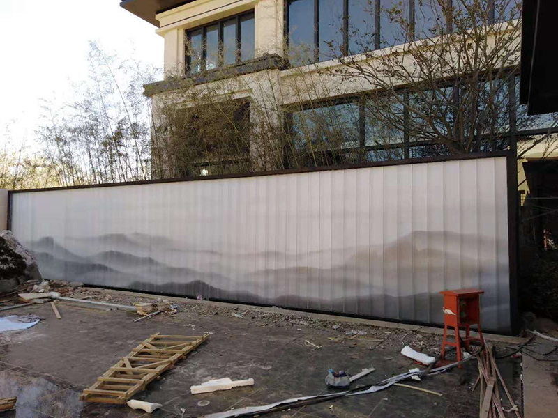 河南郑州蓝光雍锦园背景墙水墨画U型玻璃项目
